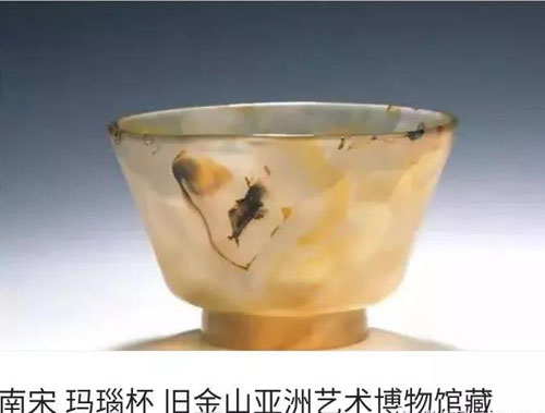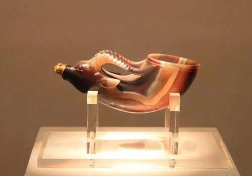 中国采用玛瑙作为饮茶与饮酒用具的历史由来已久 。最早可考的玛瑙杯出现在唐代,1970 年在西安市南郊何家村出土,收藏于陕西历史博馆,是中国首批禁止出国(境)展览文物。到宋代玛瑙器皿开始盛行,官宦和富甲人士已经大量的使用玛瑙器具。清代玛瑙的设计与加工工艺都达到很高的水平。