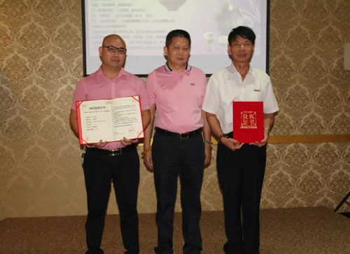 海峡两岸石语文化艺术品交易(厦门)股份有限公司董事长杨京伟先生现场为股东颁发股权证书。