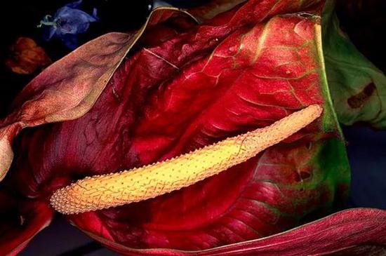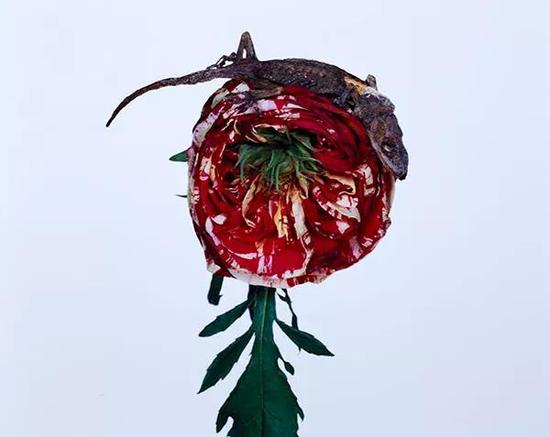那些被剪下来的鲜花,在摄影作品中获得了重生。无论是彩色还是黑白的照片中,花朵释放出的“刹那的疯狂与妖艳”完全被诱导出来。荒木先生对花的拍摄可以一直持续到鲜花枯萎,重生的花朵在作品中再次归于腐朽。