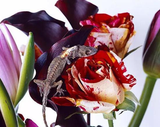 其中“色情花”和“千禧年之花”两个系列,更是将荒木经惟的创作推向了巅峰。在“色情花”系列中,荒木经惟把原本就鲜艳无比的花涂上了颜料,使其更加绚丽无比,非常吸引眼球。