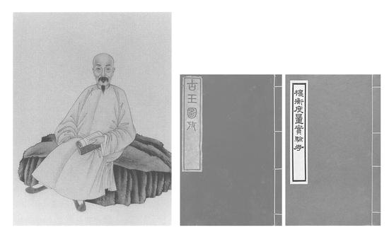 左: 吴大澂像 右:《古玉图考》与《权衡度量实验考》