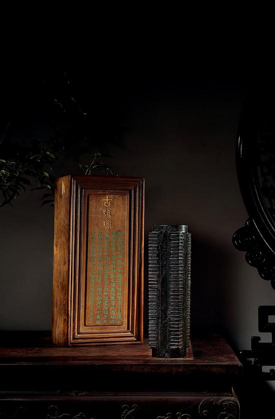 古驵琮拓片及楠木盒盖刻跋铭文拓片