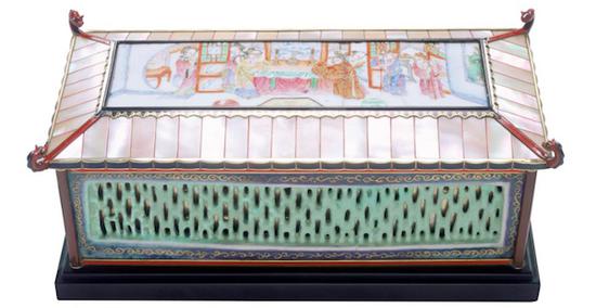 粉彩人物镂空长方香薰,清乾隆,故宫博物院藏;中国风格台式烟盒,1927年,卡地亚典藏。