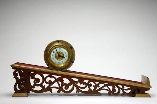 卡地亚也善于捕捉以往钟表历史中瞬间出现的特殊技术或独特设计,并驱动技术创新,将其进一步发扬光大,那些卡地亚钟表中颇为引人注目的神秘钟、滚钟、重力钟,在钟表史上都能找到他们早期的身影。此次展出的卡地亚的重力滚钟,沿着特定角度坡面匀速向下滑动,历时8天从顶端到达底部,这种钟表没有发条,不用上弦,是工业革命和近代科技催生出的蓬勃浪漫的技术创新。与故宫博物院珍藏的铜滚钟形成精密的对照。
