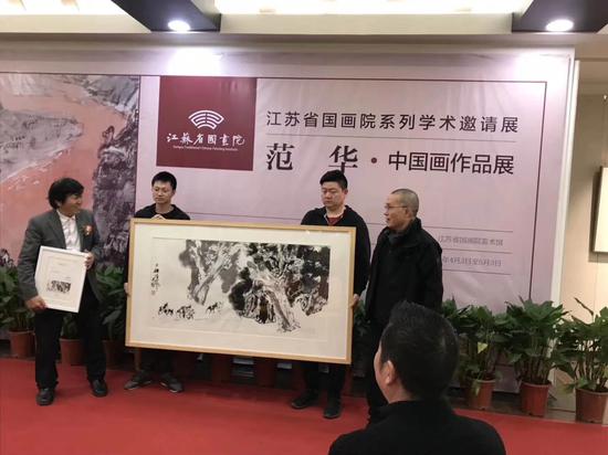 2019年4月3日 “江苏省国画院系列学术邀请展——范华中国画作品展”在江苏美术馆开幕后,范华先生向江苏省国画院捐赠《古柏雄风》国画作品