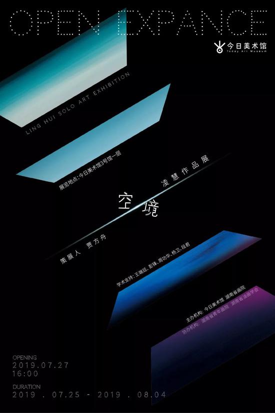 “空境—-凌慧艺术展”于2019年7月27日下午,在今日美术馆隆重开幕。本次展览由今日美术馆、湖南省画院主办,由中国著名美术批评家贾方舟先生担纲策展人,并特邀北京大学艺术学院副院长彭锋、中国艺术研究院外国美术史研究室主任王端廷、湖南省理论艺委会主任周功华、著名艺术批评家杨卫、著名青年批评家段君为学术支持。
