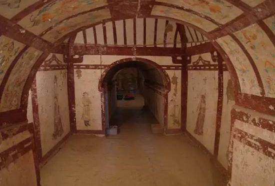 乌负日的神话传说便应运而生。新城公主墓室《天象图》正是现实中自然天象与金乌负日神话传说相结合的直观再现,为我们研究古代天文学及古人天体崇拜方面提供了翔实的珍贵资料。