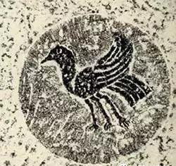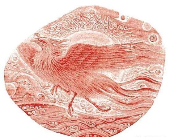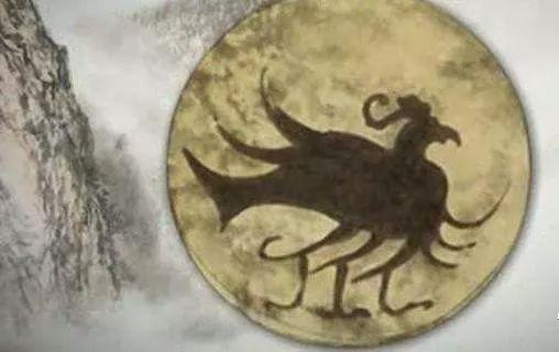 图中太阳中间的三足神鸟应为传说中的三足乌。三足乌又称三足金乌或金乌,是古代汉族神话中的神鸟。金乌形象原是二足,西汉后期演变为三足。湖南长沙马王堆汉墓就出土了二足金乌的形象。汉代王充《论衡·说日》载:“日中有三足乌,月中有兔、蟾蜍”。汉代画像石《羿射九日》图中亦刻画有栖息于扶桑神树上的也是三足金乌。有种传说,说是古代人看见太阳黑子,认为是会飞的黑鸟——乌鸦,又因其不同于自然中的乌鸦,因而加一脚用以辨别。