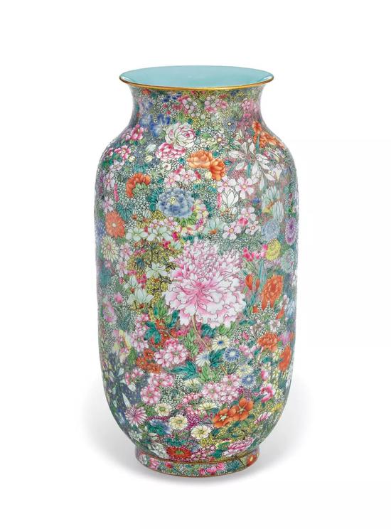 粉彩百花不落地灯笼瓶 矾红六字篆书款