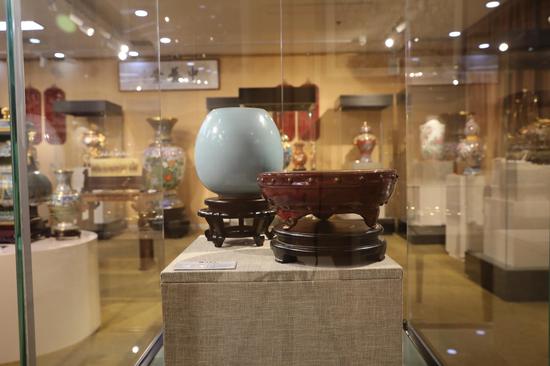 本次宋釉今烧造型选取北宋钧官窑最代表性重器《天青玫瑰紫釉三足鼓钉洗》和宋文化经典吉祥代表大作《天青釉鸡心尊》,也表达了两位大师向经典致敬,向历史超越的创作理念。