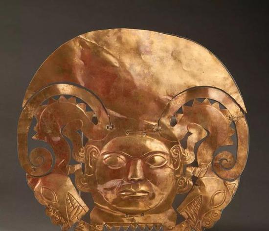 黄金头饰 莫切文化(250-750/800年)长29.5厘米,宽26.6厘米,厚0.7厘米 拉鲁克博物馆藏