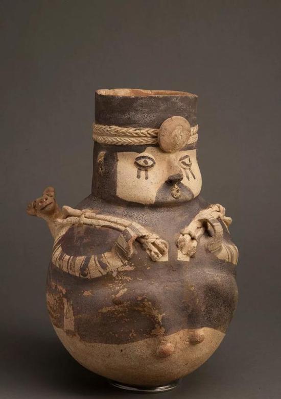 双色人形陶罐 昌凯文化(1100-1460年)高28.7厘米,宽19.7厘米 秘鲁考古学人类学历史学国家博物馆藏