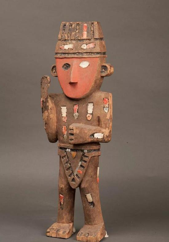 木质男性雕塑 契穆文化(1100-1470年) 高56厘米,宽20厘米,厚10厘米 秘鲁万查科昌昌遗址博物馆藏