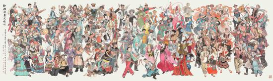此次展览共分为四个部分:峥嵘岁月——追寻红色记忆,反映革命战争年代的红色精神,特别是《周恩来同志在长征路上》、《南京路上好八连》、《雷锋的故事》等珍贵连环画原稿均有展出;时代新貌——歌颂在党的英明领导下,中国社会经济飞速发展,科学技术日新月异,人民文化生活水平不断提高。其中一幅由七位艺术家共同创作完成的七条巨幅通屏作品《和谐共舞民族情》,描绘56个民族人民欢歌笑语的美好场面,体现民族大团结,积极向上的精神风貌;祖国颂歌——描绘祖国的锦绣河山和鸟语花香,表达对伟大祖国的真挚情感和美好祝福;上海记忆——反映解放后上海城市生活的方方面面,涉及社会人文、经济生活、城市风貌、时代变迁等,体现上海人文情怀。