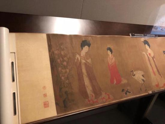 2018年辽宁省博物馆《簪花仕女图卷》展出现场。澎湃资料 图