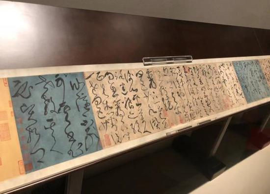 2018年辽宁省博物馆张旭 《草书古诗四帖卷》展出现场。 澎湃资料 图