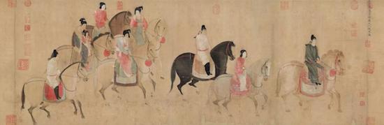 张萱《虢国夫人游春图》,宋代摹本,绢本设色,现藏辽宁省博物馆