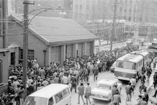 1977年恢复高考,12月11日广大考生精神抖擞、满怀信心地迈步进入考场。 解放日报供稿 夏永烈摄