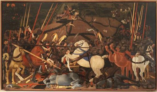 乌切罗(Paolo Uccello,1397~1475)《圣罗马诺之战》,约1435~1440,乌菲兹美术馆藏