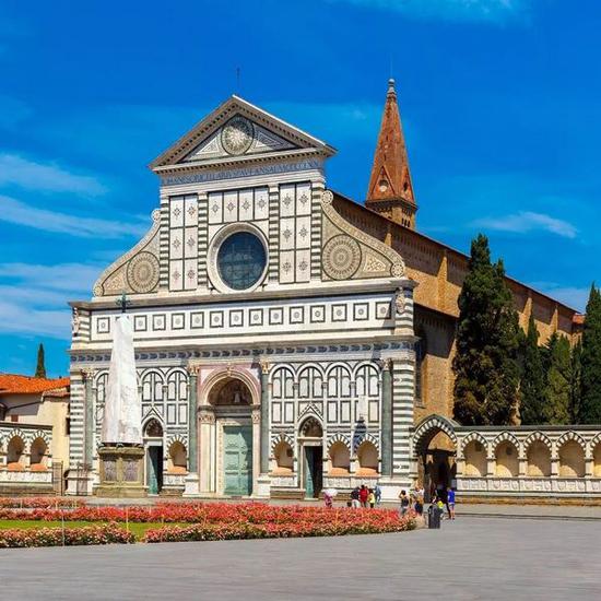 阿尔贝蒂(Leon Battista Alberti,1404~1472)设计的新圣母玛利亚教堂,位于佛罗伦萨