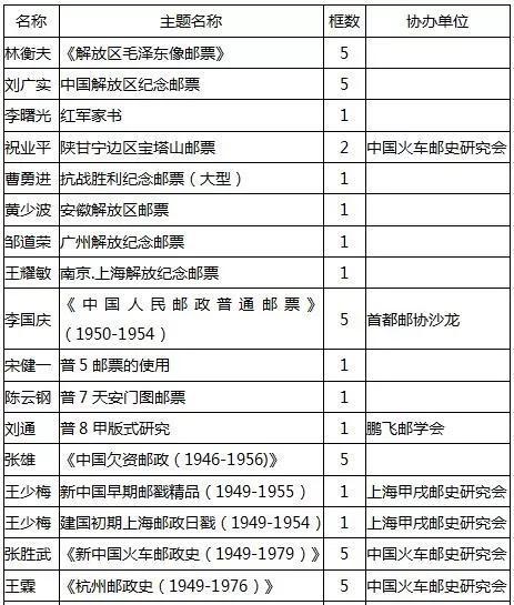 协办单位:鹏飞邮学会 首都邮学沙龙 中国火车邮史研究会 苏州市邮政史集邮研究会 上海甲戌邮史研究会 自动化集邮研究会(排名不分先后)