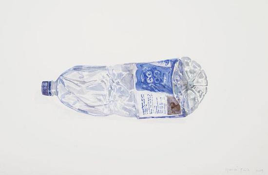 “我们就是我们丢弃的东西,”蒂克说道。在新展“放手”(Letting Go)中,蒂克收集了大约500个来自伦敦街头的废弃塑料瓶,将它们放在胶合板箱中进行排列。在展览上,观众还会看到表现被压碎扁的塑料瓶水彩画,以及一对青铜铸成的瓶子。