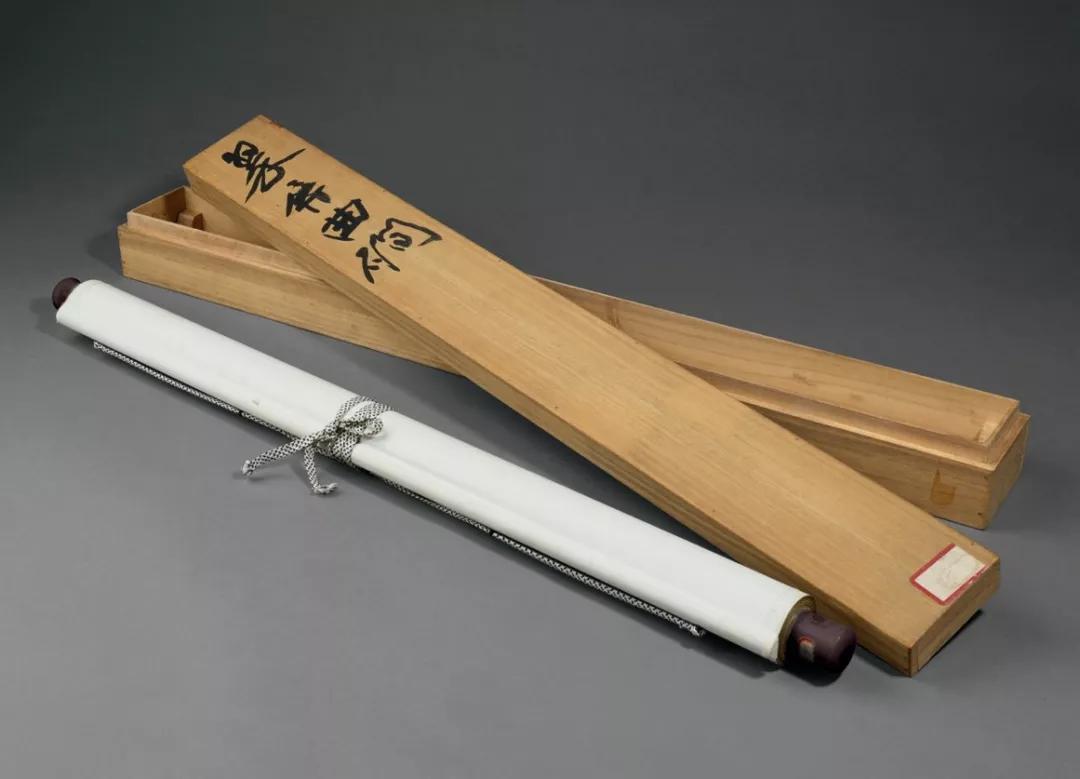 《翠屏曲涧》现存张大千题字木盒及大风堂原装式样