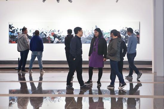 局部与整体、感性与理性、精微与广大,这是青年批评家葛秀支在看完何俊艺作品后给出的三组关键词。这些展览作品虽然名称、题材、构图、色彩都不同,但是创作思路却是始终连贯的。他在最大程度上表现灵感出现的那一刻画面,然后对局部再创作,避免画面出现的材料感、肌理感,最后以单幅的形式,于精小微妙处,体现出宏大的抽象画面。