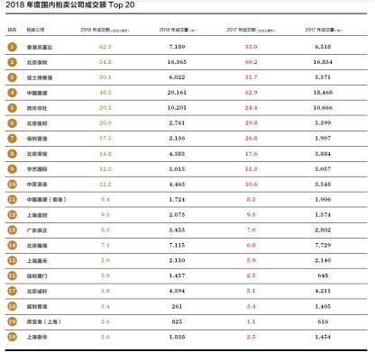 根据雅昌艺术市场监测中心(AMMA)不完全统计,2018年度国内拍卖公司成交额Top 20 中,香港地区共上榜5家公司,其中香港苏富比以总成交额62.3亿元位列榜首,同比上年增长13.3%。京津冀地区上榜8家公司。长三角地区有4家公司上榜。珠三角地区3 家公司上榜。