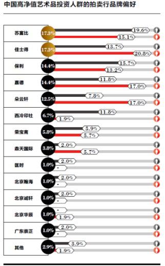 苏富比和佳士得成为最受青睐的拍卖行,各占17.3%;其次是保利和嘉德,各占14.4%