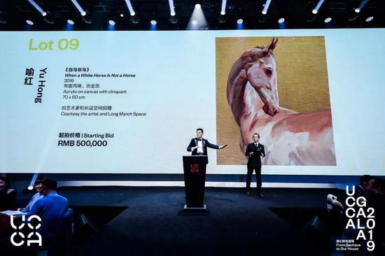 本次慈善义拍由蘇富比亚洲区董事、现代亚洲艺术部销售主管郭东杰担任首席拍卖师。最终,艺术家喻红的作品《白马非马》以100万元人民币成交,成为义拍当晚落槌价格最高的作品。UCCA Gala 2019的全部拍品共拍得超过557万元人民币。