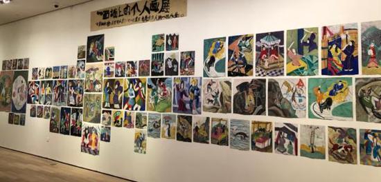 此次展览由吴从容策展,以传统“写”为精神的时代转变,丁立人 、夏阳、陈钧德、王劼音、王粲等九位艺术家用不同方式继承民国先生们的精神“质沿古意、颜变今情”。其中,90岁的丁立人先生作品以“一面墙”的形式进行展示。丁立人是浙江台州人,1950年代考取华东美院(现中国美院),六七十年代在上海工作后,与刘海粟、关良先生交往较多,其艺术取法广博,无论是汉画、民间艺术乃至非洲木雕与西方现代艺术,往往注重稚拙天真的一面,从题材到手法都有着朴拙、醇厚的气息,既有古韵,又具新意,绘画作品以戏曲人物画影响颇大,作品涵括绘画、雕刻、剪纸拼贴、版画等。