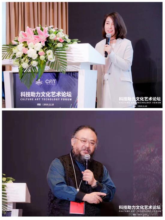 做为“科技助力文化艺术”分论坛的主理方、CAT平台的创始人李枫先生和戴敬女士首先解读了CAT的内涵:“CAT 的C代表文化culture,A代表艺术art,T代表科技technology。CAT 平台将以融合发展的视角推动三者多元发展。同时,科技的应用说到底还是为人类服务的,科技所带来的文化影响或者是艺术方面的呈现,本源仍然是人。