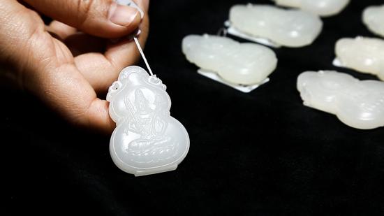 独家设计专利作品本命福佑系列由七彩云南珠宝设计团队历时两年研发,以八大守护佛、六字真言、故宫博物院的象牙镂雕双喜字“大吉”葫芦、上海博物馆的战国半壁双龙首式玉璜等文化元素为基础,结合七彩云南LOGO,利用双弧面立体雕刻、浅浮雕、立体雕、镂空雕的雕刻技法,创造出不同规格、适宜不同人群佩戴的白玉本命佛,目前整套作品已取得了国家美术作品外形专利,并在去年一年销售达万件。