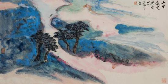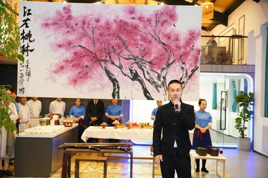 在汪海华看来,先祖汪伦曾以桃花十里,万家酒店邀约太白诗仙,对酒踏歌,情谊眷眷,千年传送,成为美谈,今由桃花潭之水、之山、之情、之韵出发,以中国画笔墨,倾泻出心上之音。