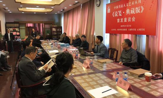 《说笺·典藏版》首发座谈会现场,上图历史文献中心主任黄显功在发言