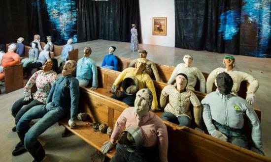 穆里约的作品是令人不安的纸型人像装置,人物凝视着外面的大海,但视线却被深色的幕帘所遮挡。他说道,“如果我们当中任何一个人获奖,我都会觉得我背叛了自己的作品和理念,因为我们想探讨的是团结。”