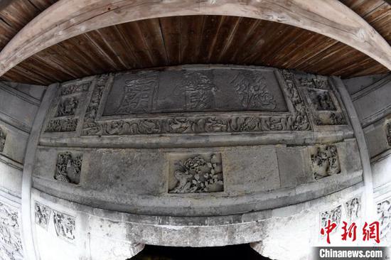 坪上村现存一座庙宇,庙里供奉一位名叫“高久住”的元朝人。高久住当时为元朝邵武路总管,兼任武夷山御茶园监制长官。这是庙门上方镶嵌的一块“总管庙”字样石雕。(乐细巾 摄) 乐细巾 摄
