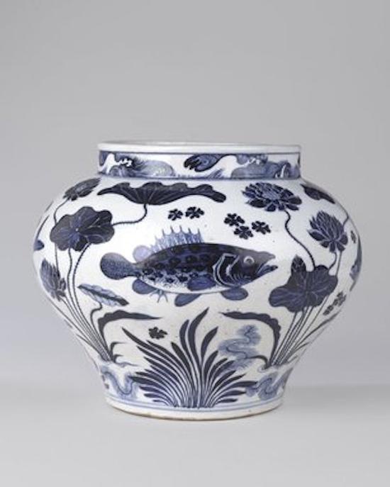 青花鱼藻纹大罐,中国,元代,1279–1368,青花釉下彩瓷器