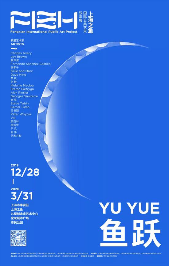 2019上海之鱼国际公共艺术双年展,是由中共上海市奉贤区委宣传部、上海市奉贤区文化和旅游局、上海市奉贤区文化创意产业推进领导小组办公室联合主办。《鱼跃YuYue》主题蕴含了这场公共艺术展的意义,随着“上海之鱼”成功“浮出水面”,让奉贤幻变出“鱼跃龙门”的新景观和新气象。作为正在建设中的奉贤新城核心地标正像它充满诗意和想象的规划:一条美丽的金鱼冲天“鱼跃”,在掀起的水波中,也将奉贤弘扬中华美育精神、实施“全域美育工程”推上新浪潮---“贤美奉贤”,深耕美育,做厚美育,美美与共。