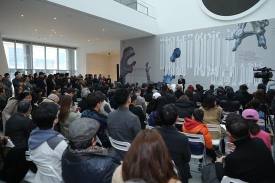 策展人吕澎在开幕式上向公众简单介绍了此次展览。吕澎表示,此次展览的主题来自法国20世纪哲学家柏格森的“生命哲学”:艺术就是生命绵延的结果。基于陈文令的艺术创作特点和个人经历,团队围绕这个主题做了展览的安排和策划,陈文令的作品就是对这个主题的最好阐释。吕澎特别向北京民生团队和陈文令团队为此次展览所付出的努力表示感谢。