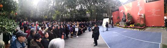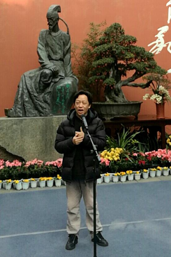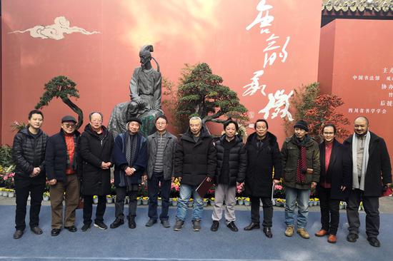1月3日下午,展览开幕式隆重举行。著名书画家刘云泉,著名书画家、诗人一壶,著名学者、书画家刘墨,四川省书学学会会长、四川省草书研究会会长田旭中,代表书法界与各界嘉宾致辞,高度评价唐昌虎书法艺术。此次展览的主人唐昌虎致感谢辞并向杜甫草堂博物馆捐赠六条屏书法作品杜甫诗《绝句六首》,成都杜甫草堂博物馆馆长刘洪宣布展览开幕。莅临展览开幕式的嘉宾有叶瑞昆、何开心、刘德扬、袁生中、许庾岭、郭维新、叶清概、杨代欣、胡建锋、黄胜凡、文永生、冷柏青、代明道、沈小彤、王驰、陈良杰、乐林等等,书画界、文化界的专家名流济济一堂。