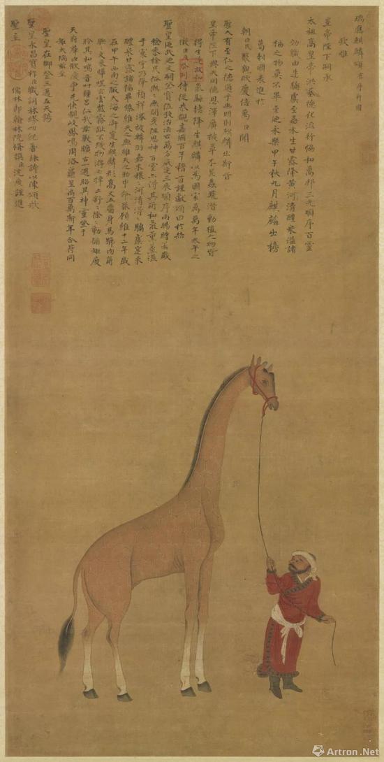 台北国立故宫博物院典藏有丰富的职贡题材作品,在此次展览中,共选展了其中的20组件,希望透过图像梳理与文字考证,分析职贡图的风格类型。目前公布的展品有阎立本《职贡图》,佚名《契丹使朝聘》,李公麟《万国职贡图》,顾德谦《摹梁元帝番客入朝图》,《明太祖御笔》,谢遂《职贡图》,周昉《蛮夷执贡图》,明人画《麒麟沈度颂》等。