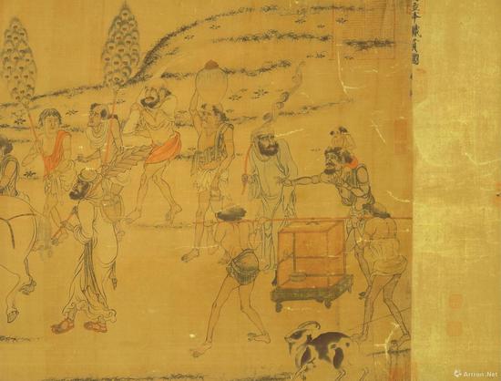 此图笔意有宋画风格,但全图结构特征还保存了唐画样式。设色淡雅,以红色加点缀。它的保存为研究唐朝时期的对外政治经济关系提供了重要的参考资料。