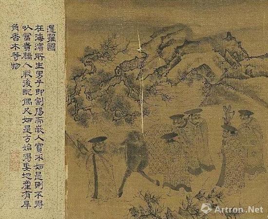 王达在题跋中如此评价该画,并顺便发表了一下政治看法:右诸夷职贡图,乃李龙眠笔也。用意精密,思神巧,施设布置无一毫渗漏,称合,且一展玩。而诸国之衣冠制度,风土方物,国异人殊,泾分井削。而当时向化,归服之。中原抚绥之意,俨在目前。其于王政,岂小補哉。宜用珍袭,永为长府之镇。