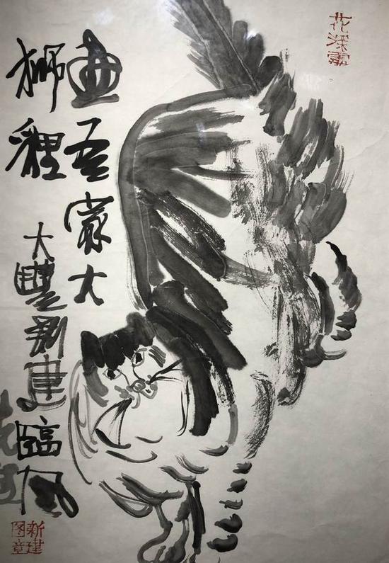 在她的印象中,朱新建待人真诚,作画如痴,“新建大叔不眠不休、以性命相搏地瞎涂、疯画,在于他于写意一道的痴迷。用最真诚朴素的笔墨,去书写无邪的精神,这是新建大叔孜孜以求的。”