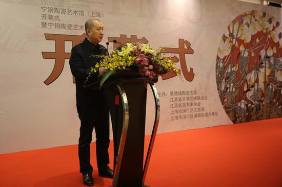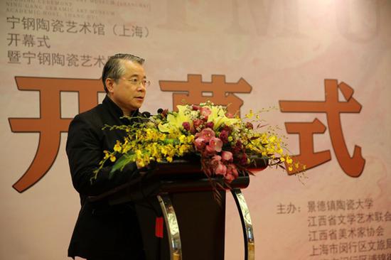 景德镇市人民政府副市长孙鑫在致辞中对上海市闵行区浦锦街道在宁钢(上海)陶瓷艺术馆落成工作的支持表达了诚挚的感谢,高度认同了陶瓷文化落户上海后所带来的良性影响。随后,中国美协副主席、教育部高校设计类教指委主任、清华大学美术学院院长鲁晓波在致辞中表示,景德镇陶瓷乃至中国陶瓷的历史及其经验和价值,需要不断通过学术研究来彰显和阐发,需要从文化学、艺术学、美学等诸多角度加以研究和总结,宁钢(上海)陶瓷艺术馆的成立就是这样的一种探索与研究成果。