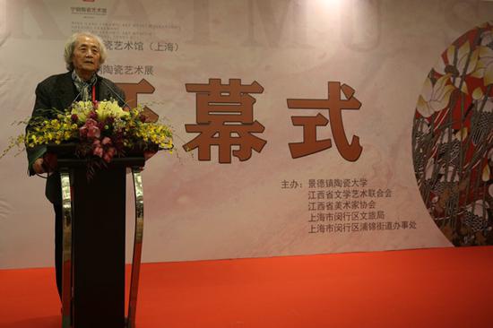 原《美术》杂志主编,第二、三届中国美术家协会理论委员会副主任,俄罗斯列宾美术学院名誉教授王仲在致辞中表达了对宁钢陶瓷艺术的激赏,并肯定了陶瓷艺术馆在上海落户后起到的对话作用。