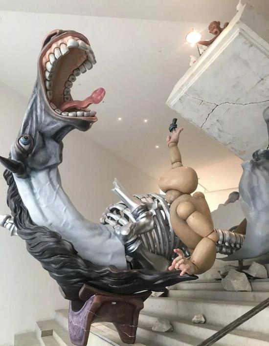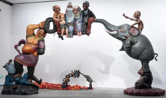 因为在对人生、对现实、对爱、对艺术有了更深刻更精微的体悟,艺术家拥有了崭新的艺术心境和生命状态:他发现自己的艺术创作与人生遭遇都有着千丝万缕的内在关联,而他的人生史似乎就是他的艺术史。生命短暂与充满危机,索性在自己的艺术创作中让它演绎为一种时间的压缩也许是有趣的。这个理想并不是凭空而来的,它建立在陈文令对现实社会种种观察、感受、批判的基础之上,既是他对当下社会的价值判断的反应,也是他对当下这个外在看似美好、繁华,内里却充满冲突、危机与裂痕的世界的担忧与焦虑。于是,这种反应既是他个人的,也是社会的,也是人类的。并且,陈文令的艺术虚拟,并没有妨碍他创作的严肃性。正如他在新近创作的《平庸之恶》(2019)之中塑造的各种夸张动物的形象(马、猴子……),让我们仍然会感受到艺术家对现实问题的感知力和“烦躁”。