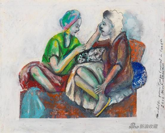 如果绘画就是为了唤起那些不在场的事物的在场,马歇尔 · 雷斯仅仅是这些小型素描就已经做到了,从一张脸,一个身体,一个器物,这些背后你会联想到一些庞大复杂的事物,去想象一个虚无或实际的世界,那些想象折射的就是个人对世界的看法。观看绘画是瞬时的,但之后的联想是延时的,观察马歇尔 · 雷斯如何给他的画中人皮肤赋以颜色,是动物肉体的质感,还是年久塑像的质感,又是如何给他们的衣物和周边以色彩,那种绚烂,透着反智。要知道,马歇尔·雷斯,一个纳粹时代的幸存者,和家人深夜翻越阿尔卑斯山逃命的男孩,对世界的绝望,永存心间。所以同样选择隐居的艺术史学家约翰·伯格(Jonh Berger)曾怎样说?他说,创造,不管多么美丽,毕竟始于苦难。
